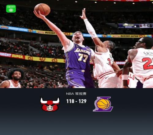 湖人129118公牛,东契奇46+7+11,詹姆斯上半场20分,吉迪19+6+7