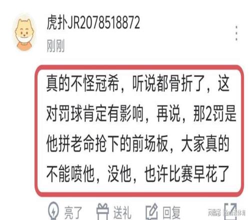 赛后,许多球迷对吴冠希的表现,给予了充分肯定,纷纷表示“不赖冠希,今天燃尽了,他不拼前板也没那两罚。”;“冠希最近几场都非常不错了,值得鼓励。”;“真的不怪冠希,听说都骨裂了,这对罚球肯定有影响,再说,那2罚是他拼老命抢下的前场板,大家真的不能喷他,没他,也许比赛早花了!”……