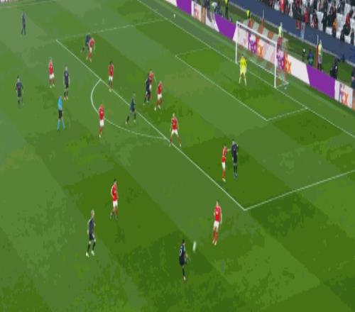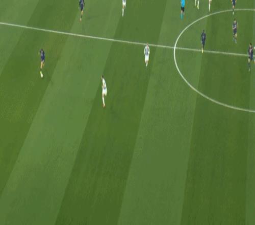 本场比赛开场阶段登贝莱打丢点球,维蒂尼亚首开纪录;