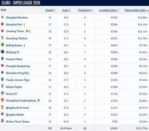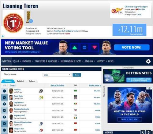 中超好看了!辽宁铁人是中超身价前6名中:唯一没被扣分球队!